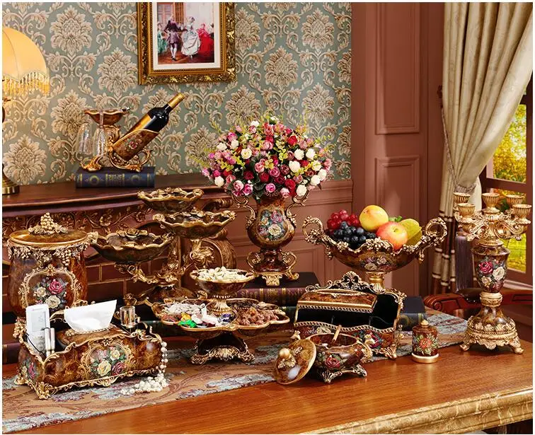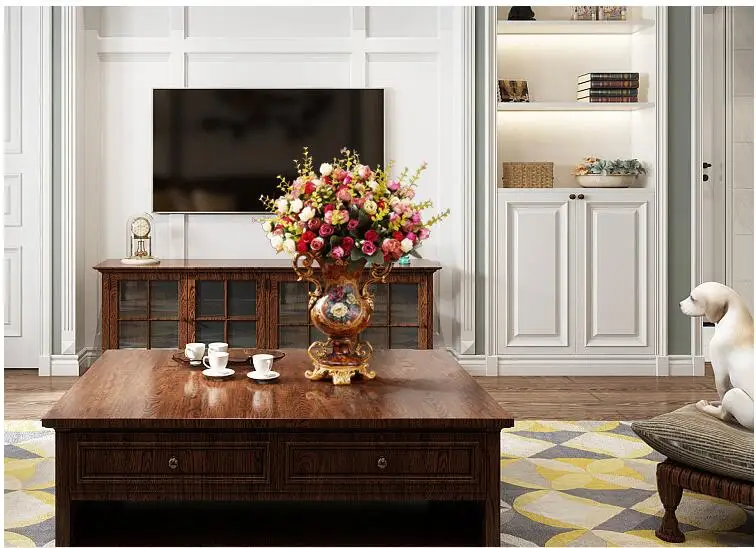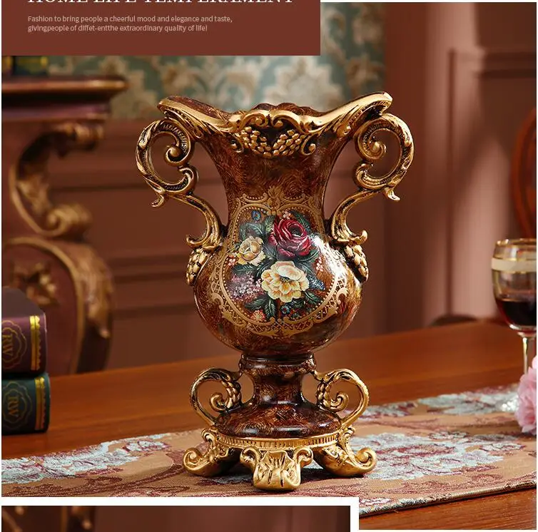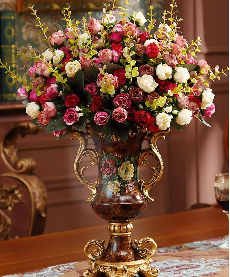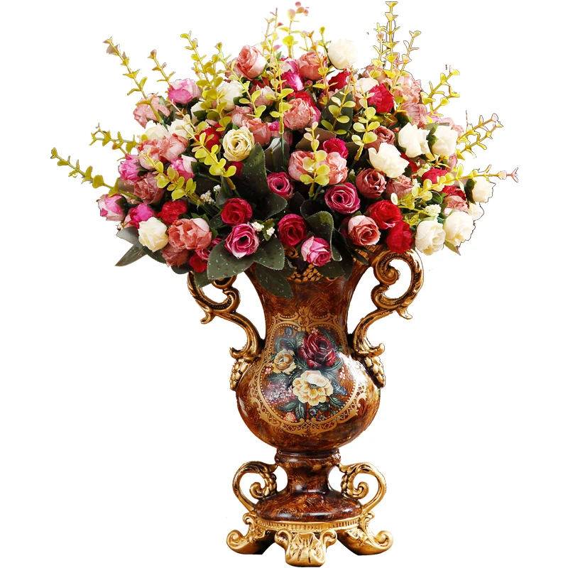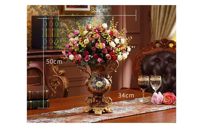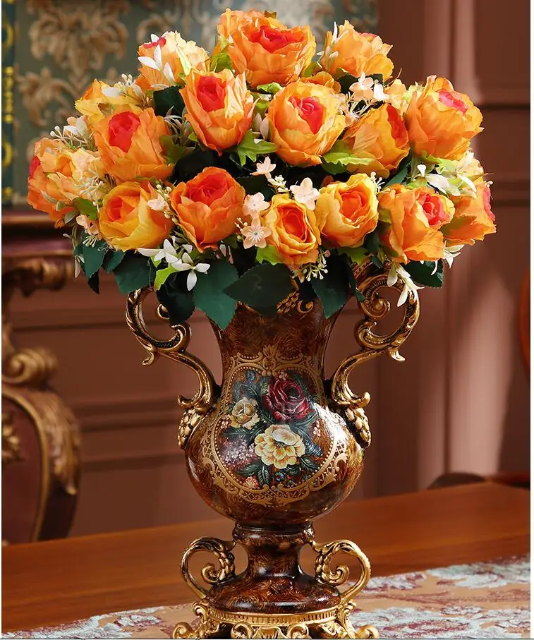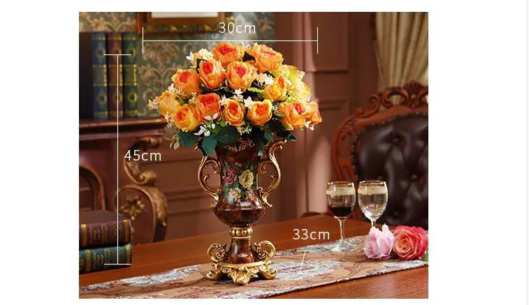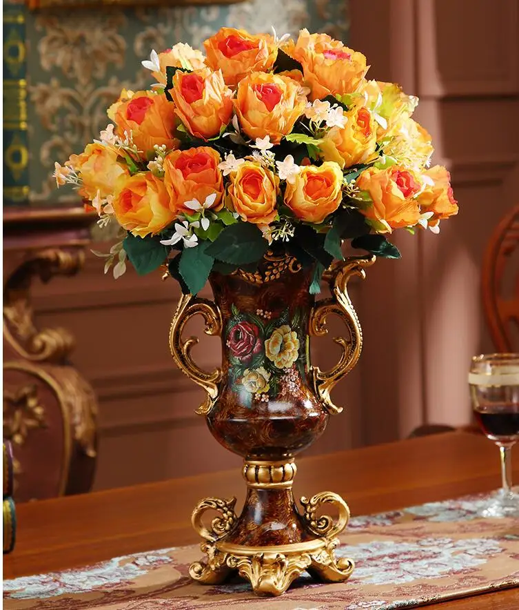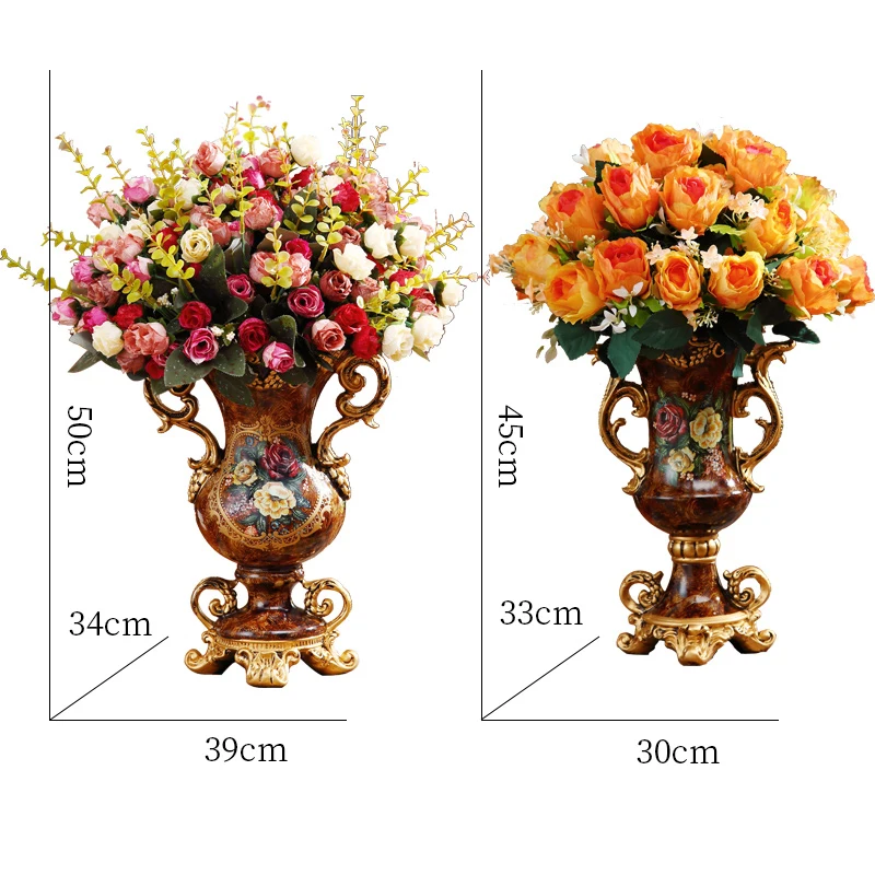 European Resin Vase+Artificial Flower Set Decor Home Livingroom Decoration TV Cabinet Cafe Flower Arrangement Flowerpot Crafts