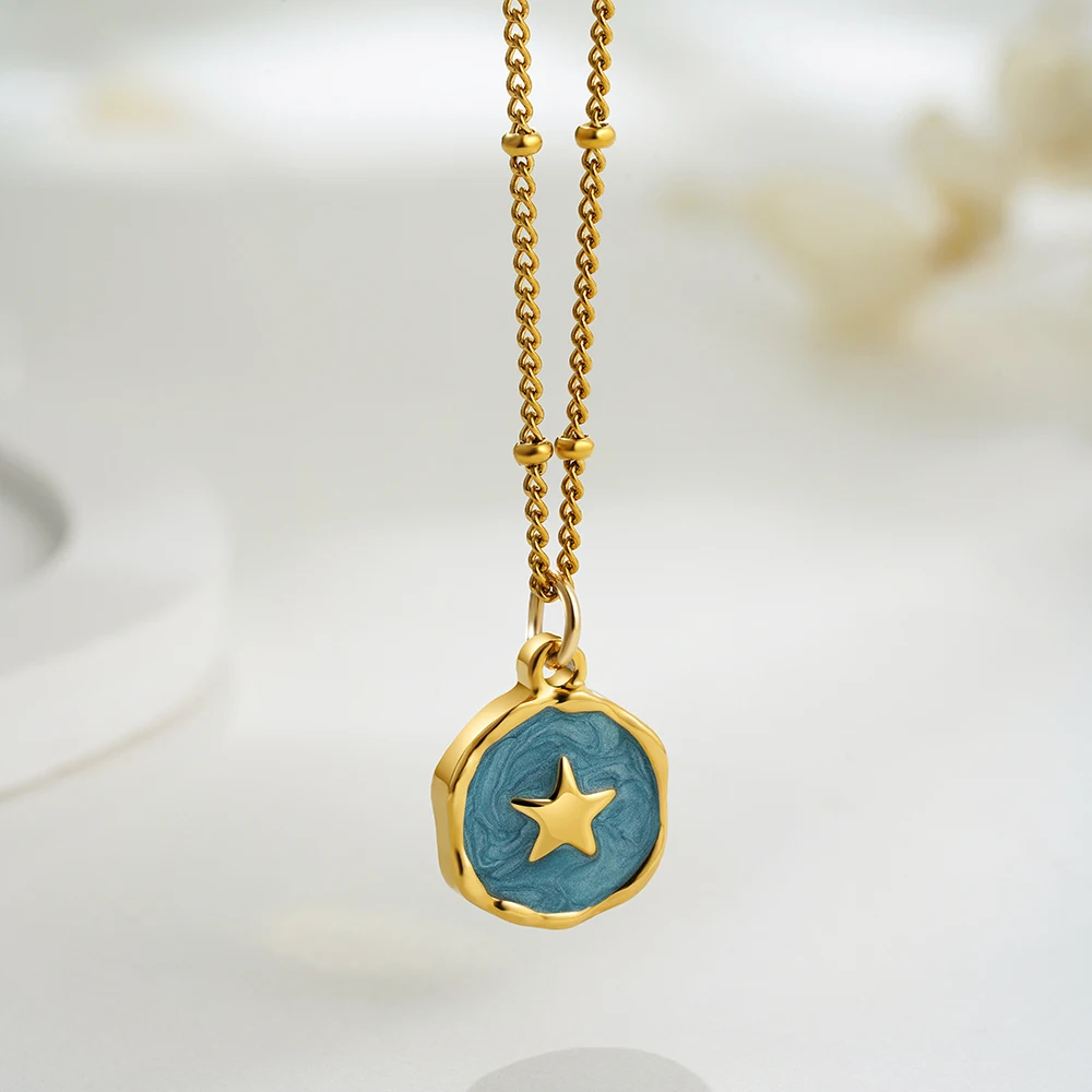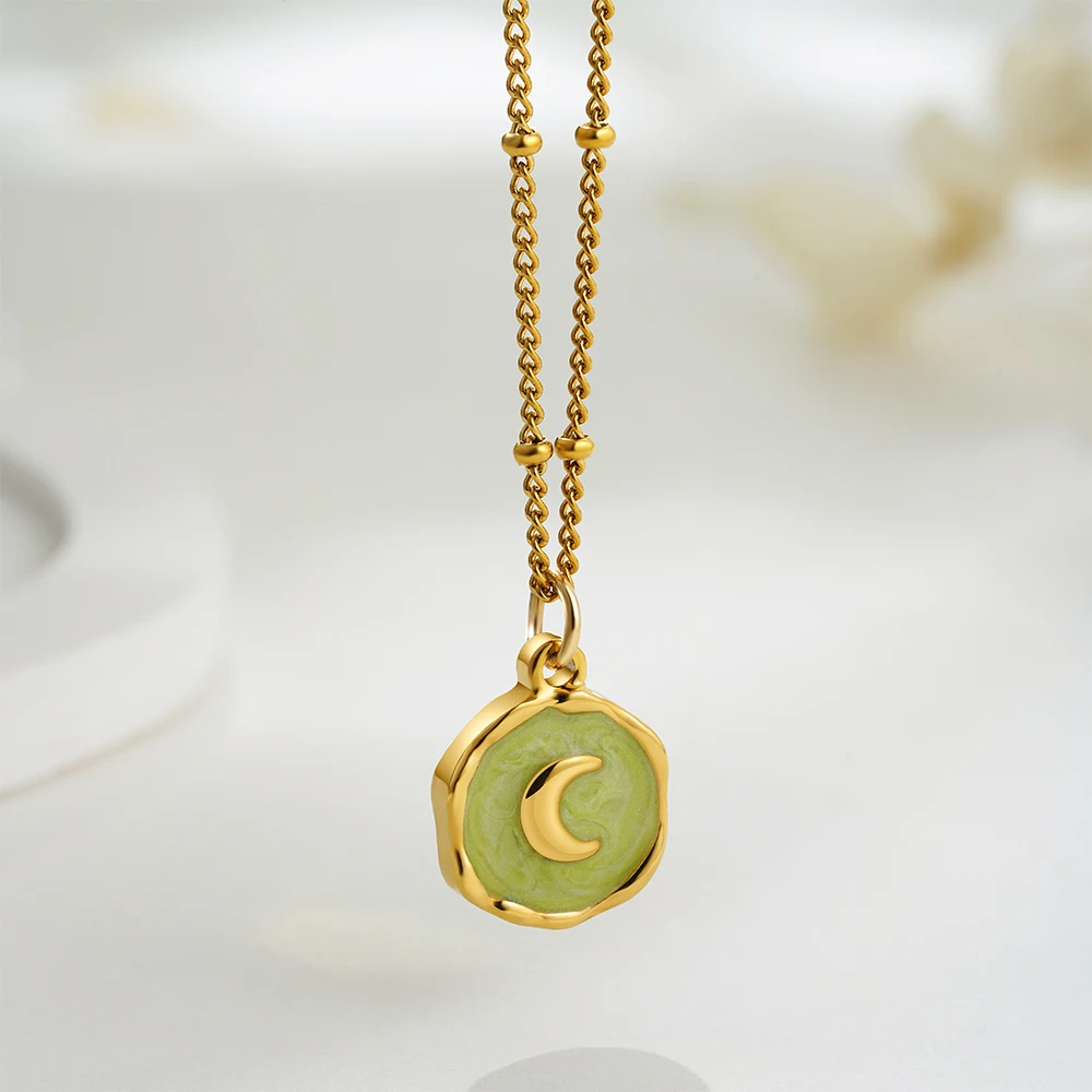 Handgefertigte, geometrische Anhänger aus Naturstein auf eleganter Edelstahl-Kette — spirituell, ästhetisch und alltagstauglich.